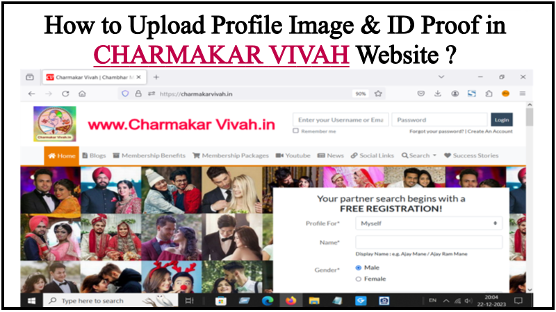 9) How to Upload Profile Image & ID Proof in Charmakar Vivah WEBSITE?