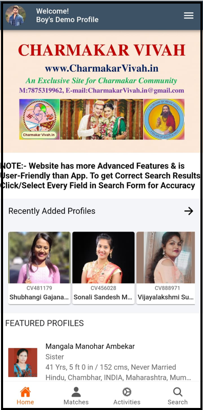Above Video is of other Matrimony. But the Software & Procedure is Same in Charmakar Vivah.